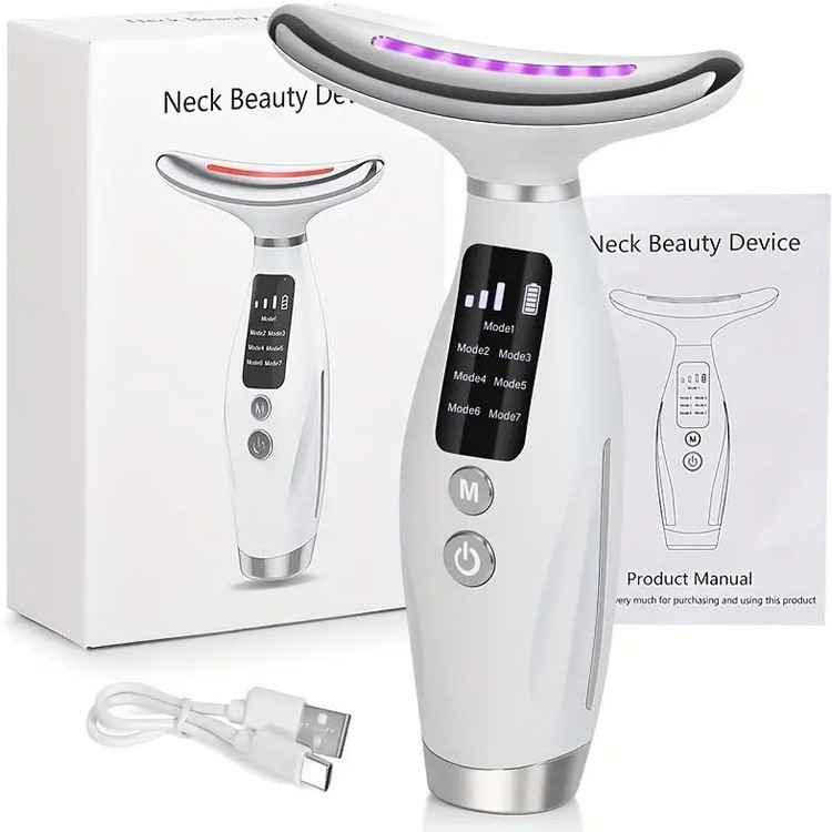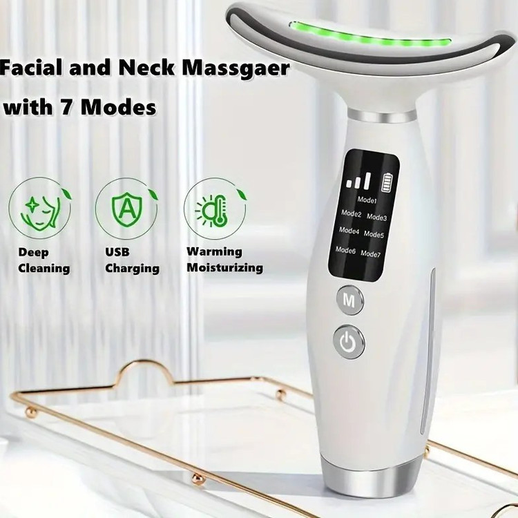 ۴. برای ماساژ گردن، دستگاه را از پایین گردن به سمت بالا حرکت دهید تا گردش خون افزایش یابد و پوست گردن لیفت شود. حرکات بلند و ملایم انجام دهید، هر ناحیه را به مدت 1-2 دقیقه ماساژ دهید.